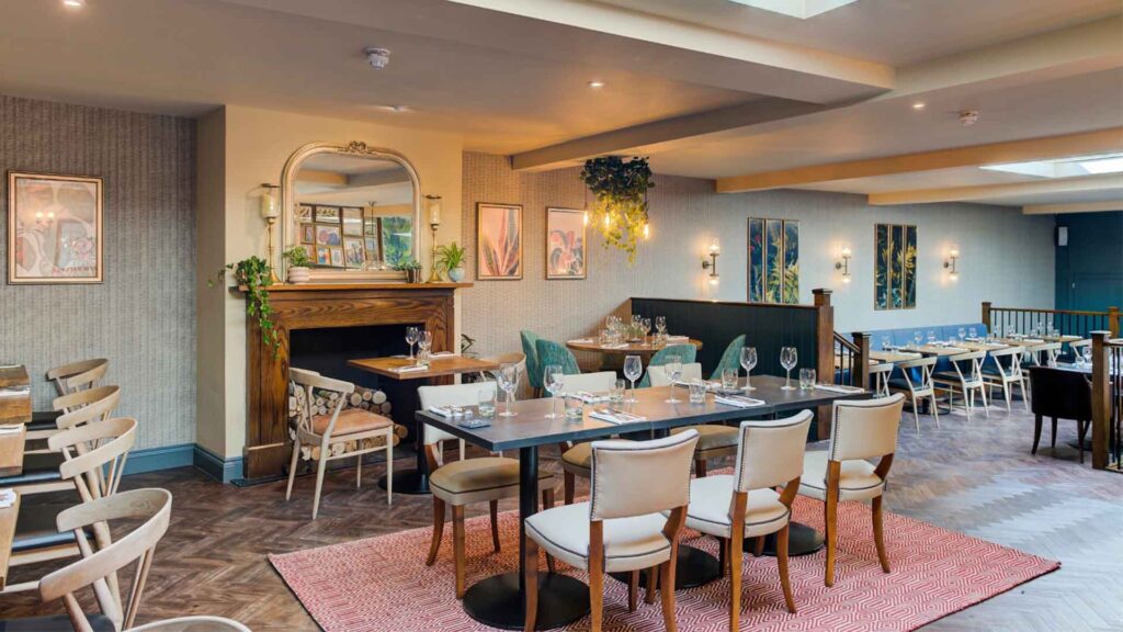 Natural wood flooring, mixed with mosaic tiles and subtle soft furnishings, against scattered, bold Brunswick green walls, add an elegant finishing touch to the newly renovated space. Meanwhile, the new lounge features cosy sofas, ornamental log burners, designer wallpapers and chic soft furnishings.